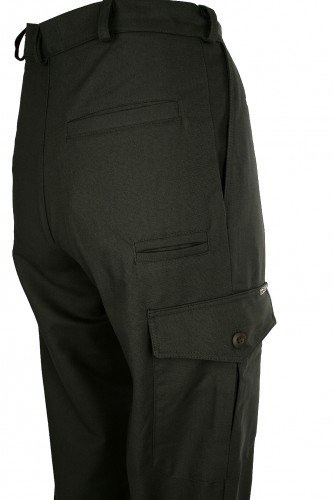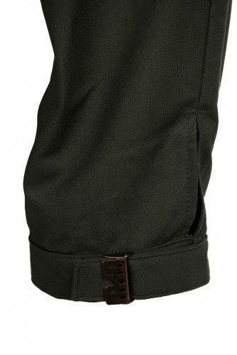 Klasické golfky , dvě klínové kapsy, stehenní kapsa, zadní kapsa, kapsička na nůž, dolní manžety zapínané kovovou sponou. Výrobek je ošetřen vododpudivou Teflonovou úpravou, která umožňuje snadnější čištění.