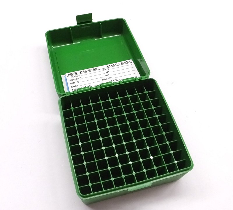 Kvalitní krabička na 100ks kulových nábojů. Možné ráže: 17 Fireball, 17 MACH 4, 17 / 221 / 222 / 223 Rem., 204 Ruger, 218 Bee, 222 Rem. Mag., 223 Rem. HP, 25-20 Win., 300 Blackout, 300 Sherwood, 300 Wisper, 32 Ideal, 32 / 401 Win. S.L., 350 Legend, 351 WSL, 38-55 Win., 5.56x45, 6x47, 6mm TCU, 6mm-223 Rem., 7.62 x 37 Musang. Max. OAL= 2.65"